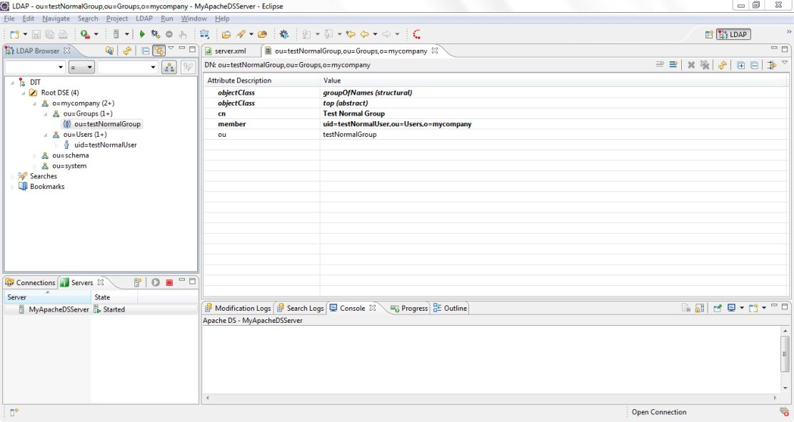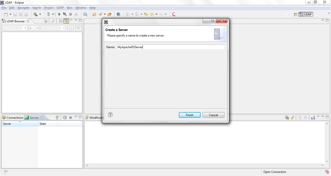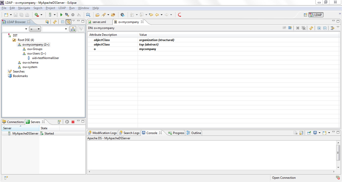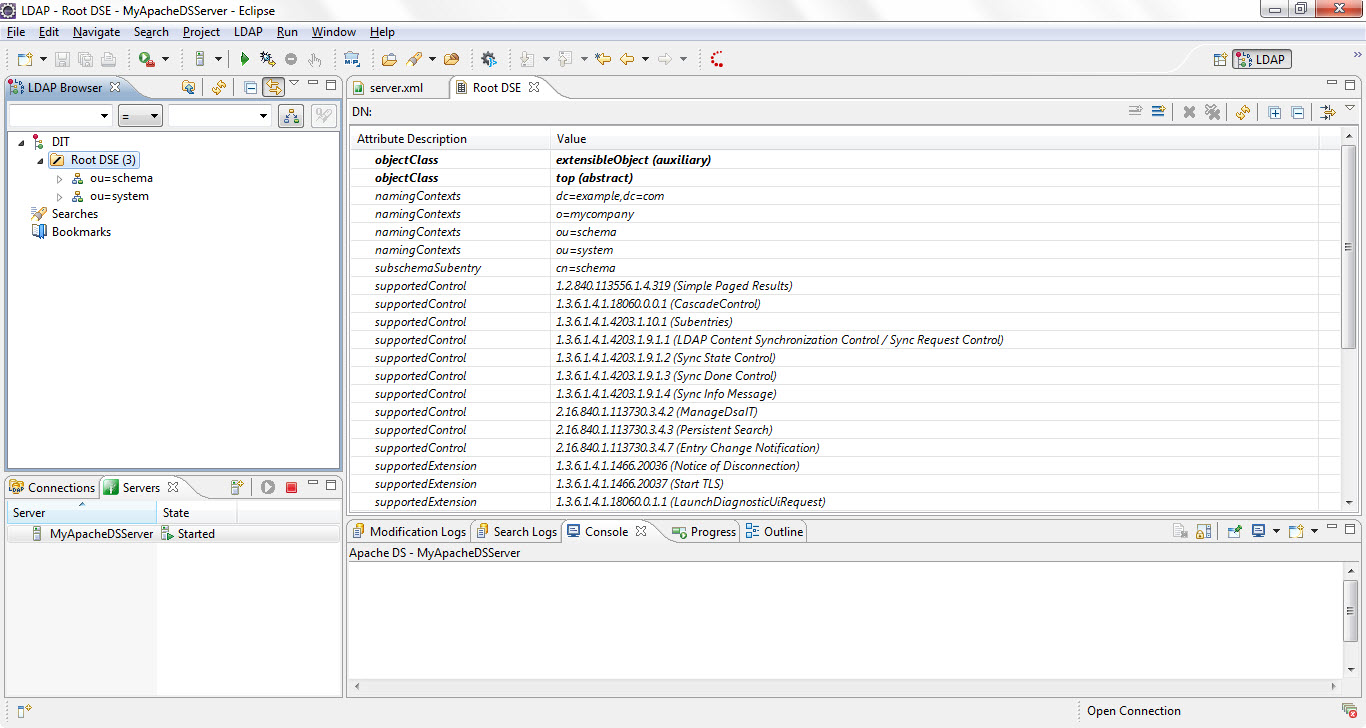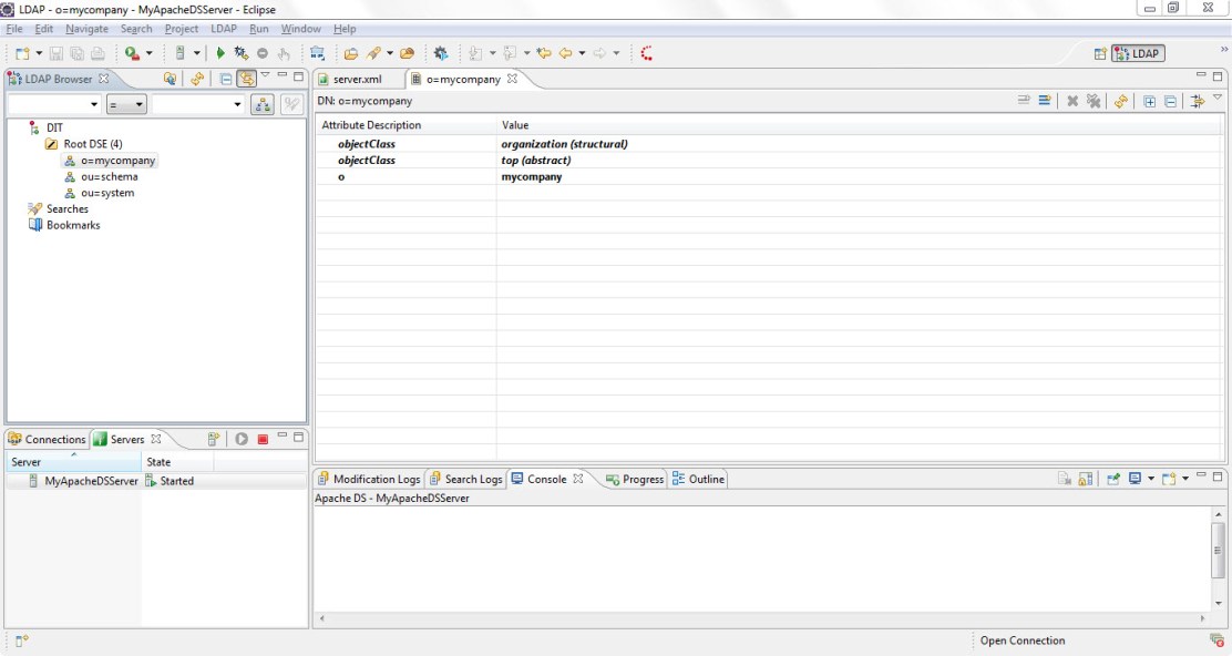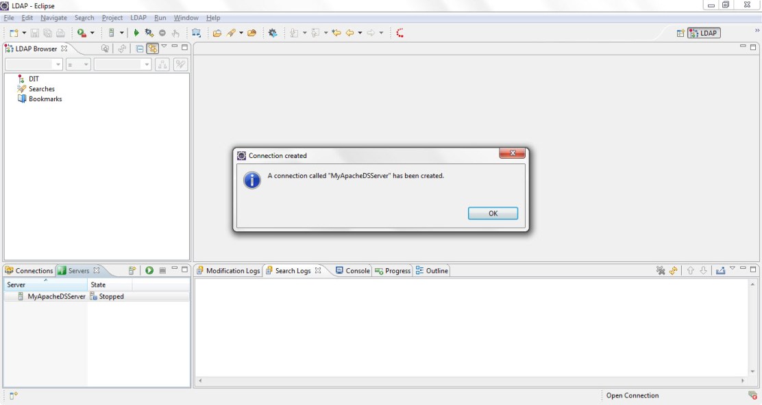 Seventh Right click on your server and select Run, similarly Right Click on your connection and select Open Connection. Once your connection is open you can expand DIT under LDAP Browser to see the default values.
