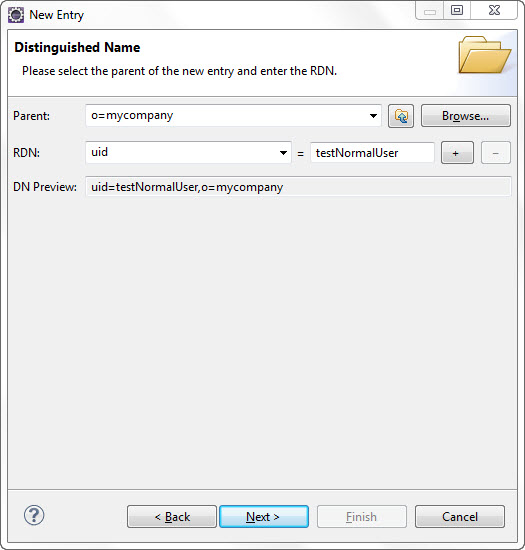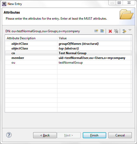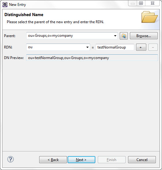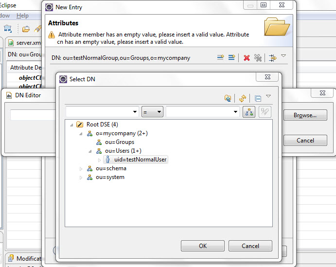 Twenty Second In DN Editor browse to testNormalUser which we created. Click on OK and then fill in Common Name (cn) for Group and then click finish.
