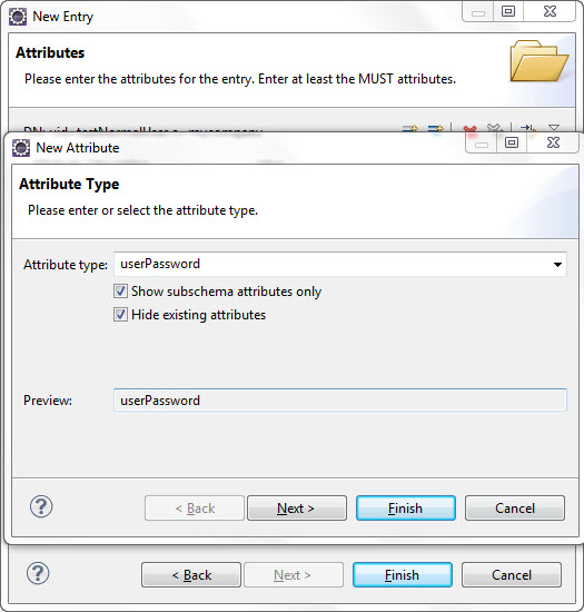 Nineteenth Right click on the editor and choose New Attribute, in the subsequent page type in userPassword and click on Finish